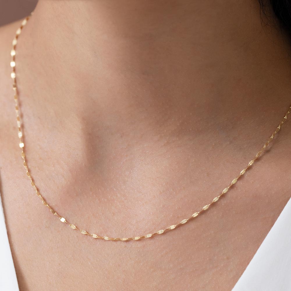 Mirror Necklace Chain in 14K Gold
