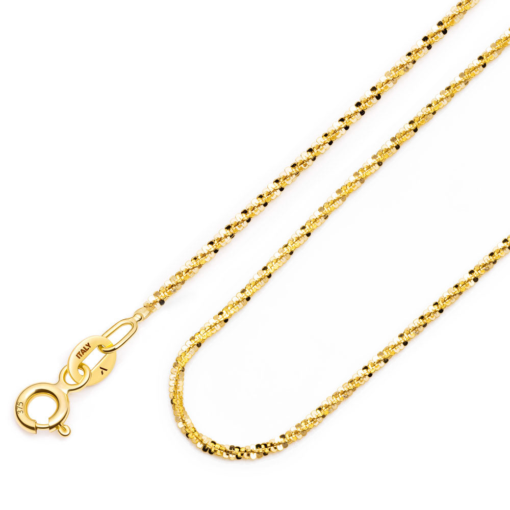 Our 9ct gold chain for women embodies the beauty of fine craftsmanship. Renowned for its warm, golden tones, it elevates any look for every occasions. This solid gold popcorn necklace is perfect on it's own or paired with our elegant yellow gold pendants.