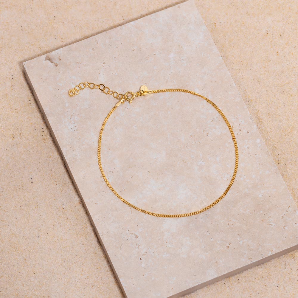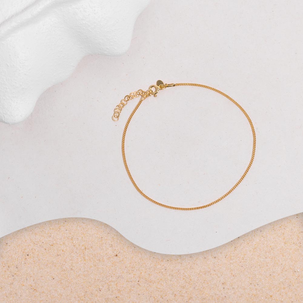 Elevate your summer style effortlessly with our chic gold plated sterling silver anklet for women. This ankle chain adds a touch of elegance to your leg, perfect for those sunny days by the sea.
