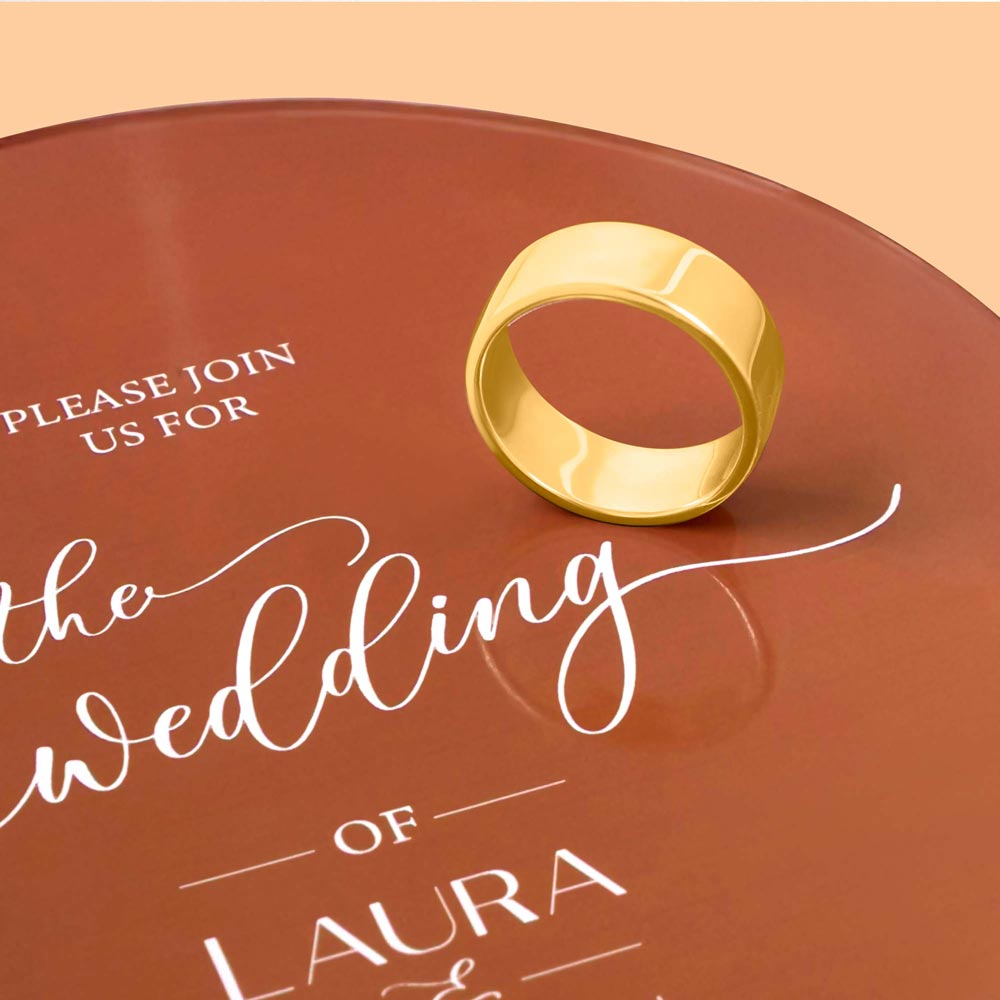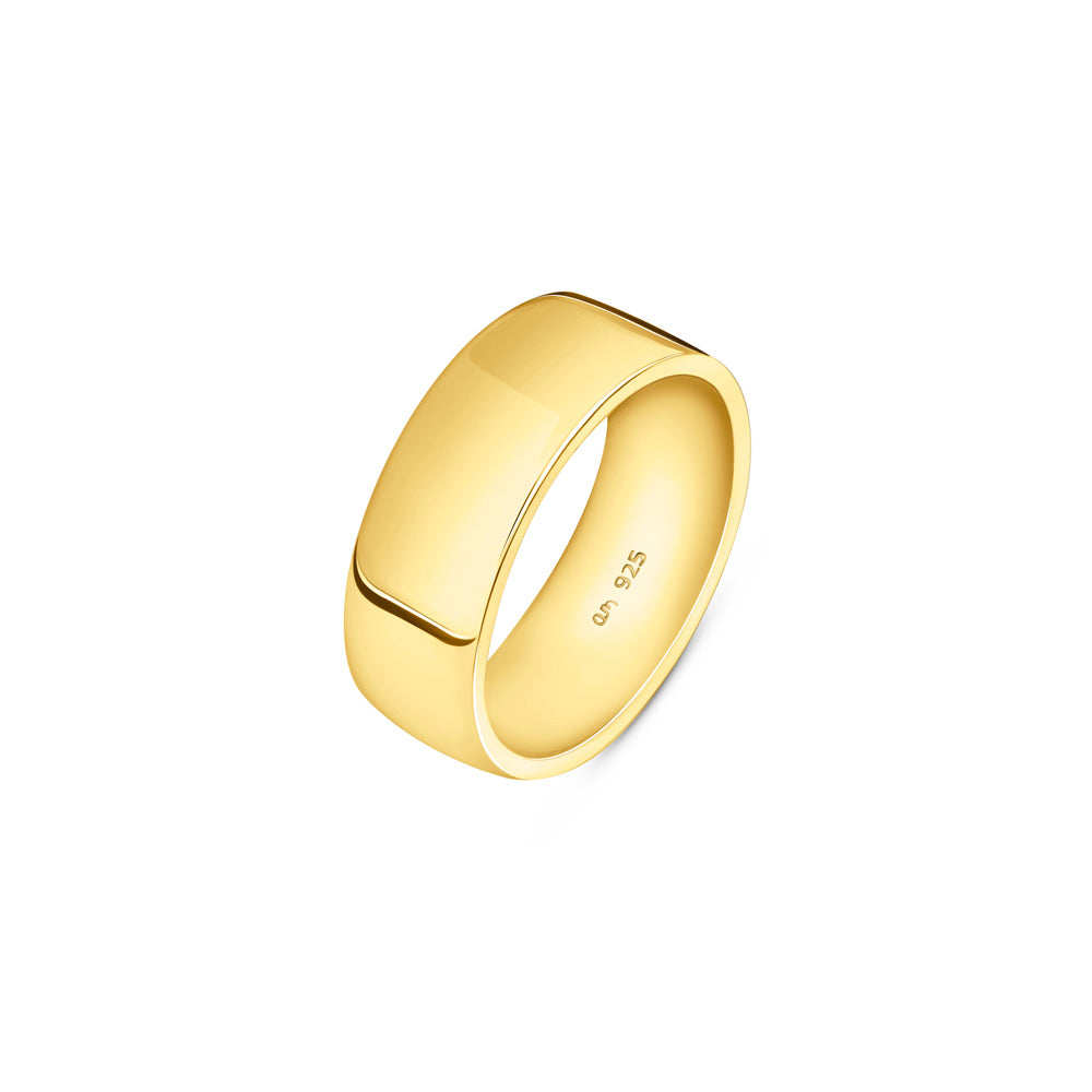 This 8 mm gold-plated wedding band for men blends timeless elegance with modern simplicity, honouring your love story in a refined minimalist style. Crafted from 925 sterling silver with a gold-plated finish, this men’s wedding ring fits comfortably on the wedding finger. More than just a wedding band, this chunky gold-plated ring serves as a daily reminder of your commitment.